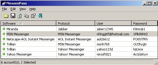 Usare MessenPass è semplice, in quanto non bisogna fare niente, se non doppio click sul file del programma, che non necessita nemmeno di installazione. Una volta aperto, MessenPass mostra nella schermata principale username e password del programma di messaggistica installato sul computer. Questo succede perchè molti, praticamente tutti, usano la funzione di salvataggio automatico della password, e questa rimane memorizzata in un file di testo nascosto nel disco fisso.